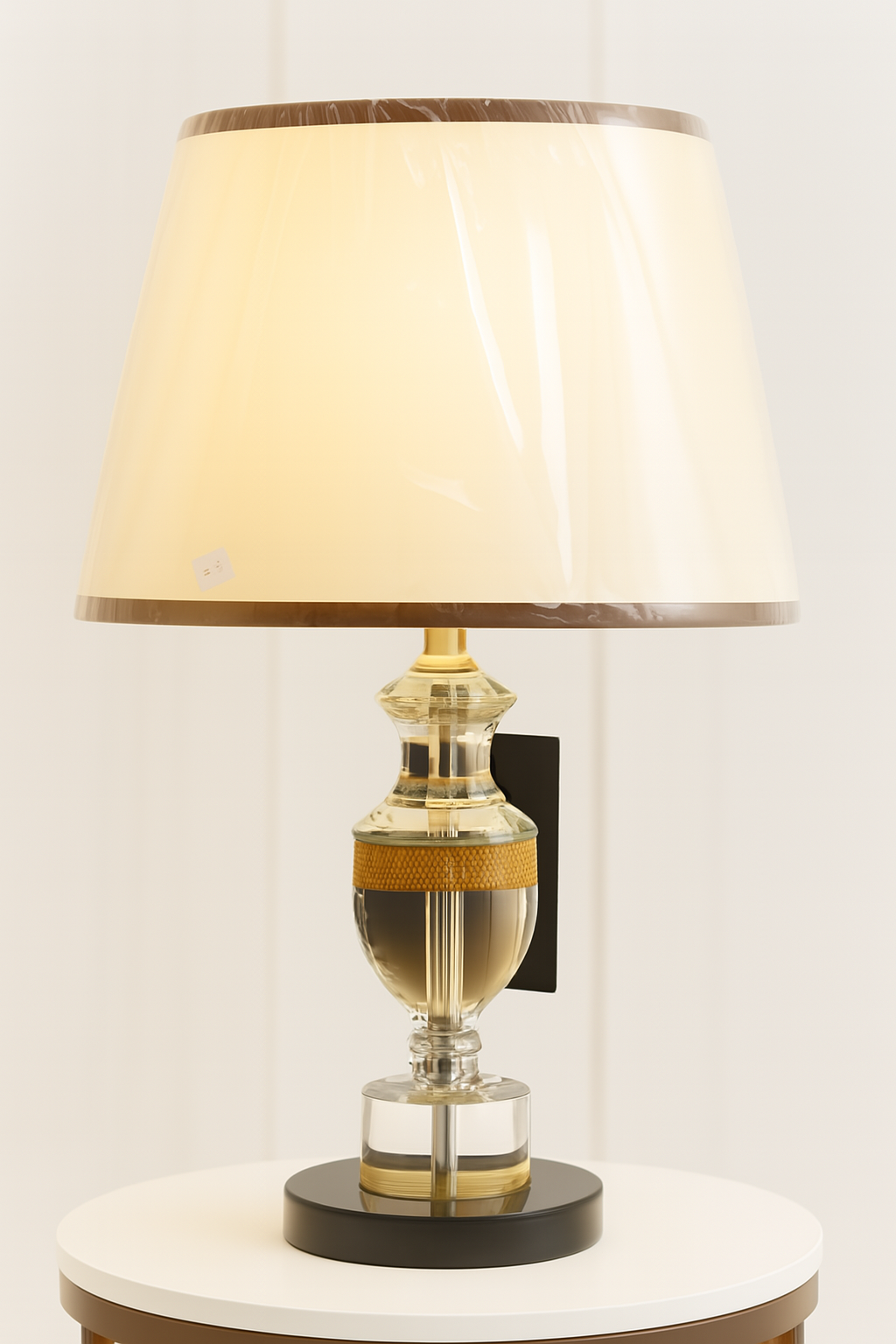 Elevate your home décor with the timeless elegance of the Classic Crystal Table Lamp with Gold Banding by LuxuryLights. This exquisite lamp features a stunning crystal base adorned with luxurious gold detailing, creating a sophisticated centerpiece for any room. The warm, soft glow from the premium lampshade adds a touch of refinement and comfort, perfect for living rooms, bedrooms, or offices.