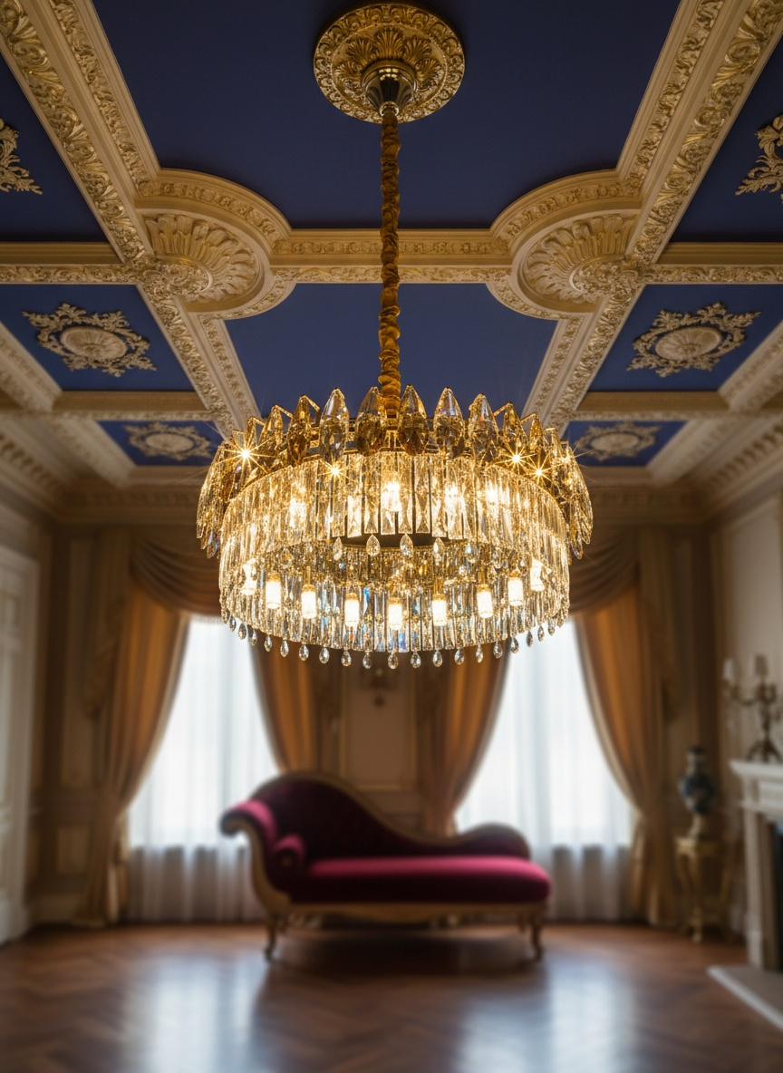 Elevate your space with the Imperial Halo Crystal Chandelier by LuxuryLights, a masterpiece of elegance and sophistication. This stunning chandelier features a radiant halo design adorned with meticulously crafted crystal accents that shimmer beautifully, creating an ambiance of pure luxury. Perfectly suited for grand living rooms, dining areas, or upscale spaces, it transforms any room into a regal setting.