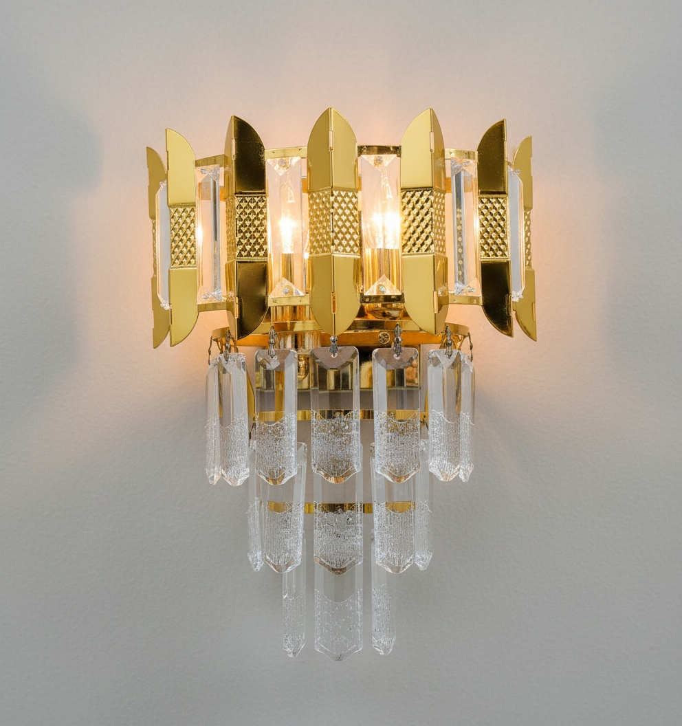 Elevate your space with the Obsidian Crest Wall Sconce, a striking blend of modern sophistication and timeless elegance. Designed by LuxuryLights, this exquisite wall chandelier features a radiant gold finish paired with cascading crystal accents that shimmer beautifully when illuminated. Perfect for adding a touch of luxury to living rooms, hallways, or bedrooms, this sconce transforms any wall into a statement of refined taste.