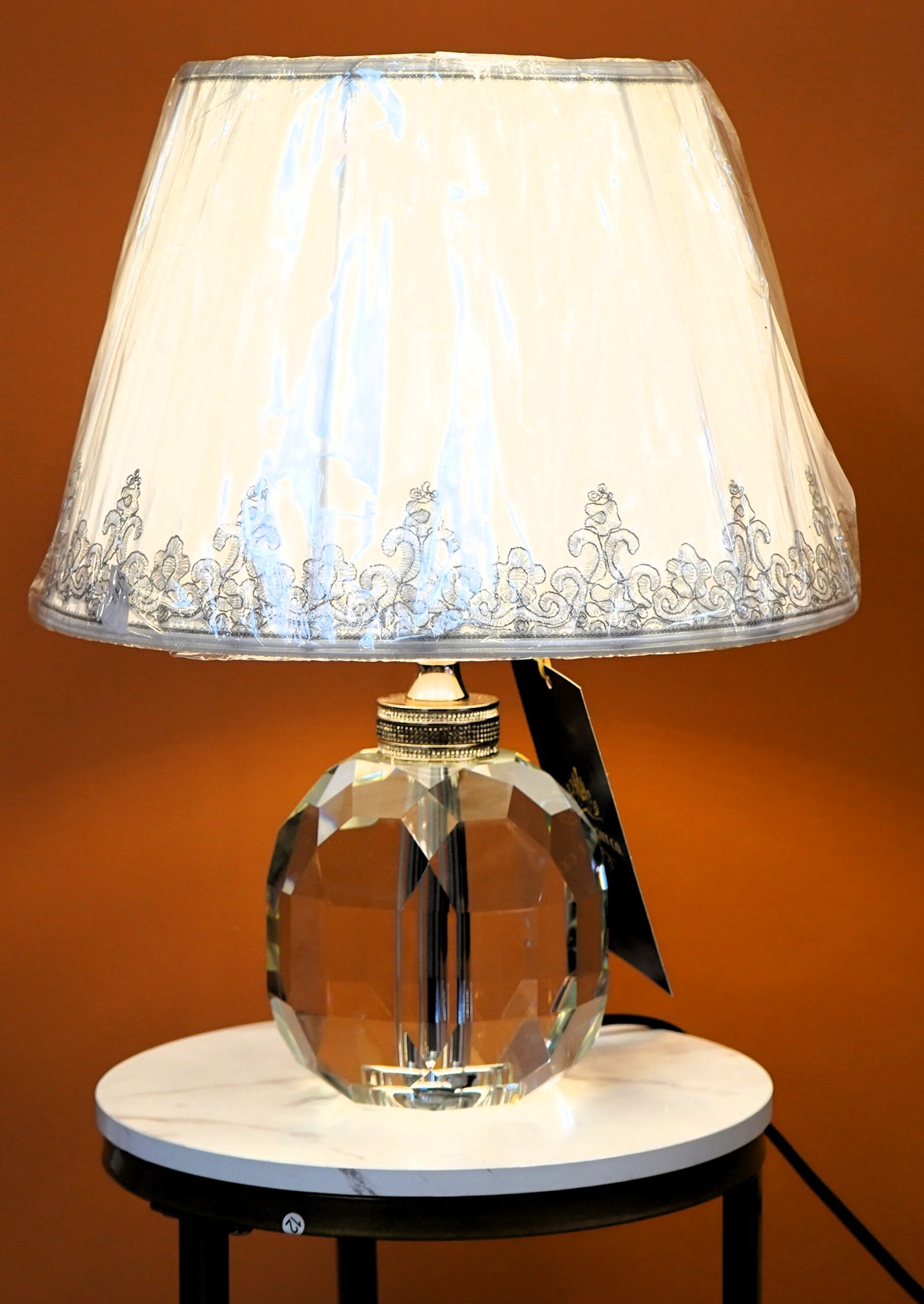 Elevate your space with the Ornate Crystal Globe Lamp, a stunning centerpiece of elegance and sophistication. Crafted by LuxuryLights, this table lamp features a dazzling crystal globe base that refracts light beautifully, adding a luxurious touch to any room. The embroidered lace shade completes the design, casting a warm, inviting glow while exuding timeless charm.