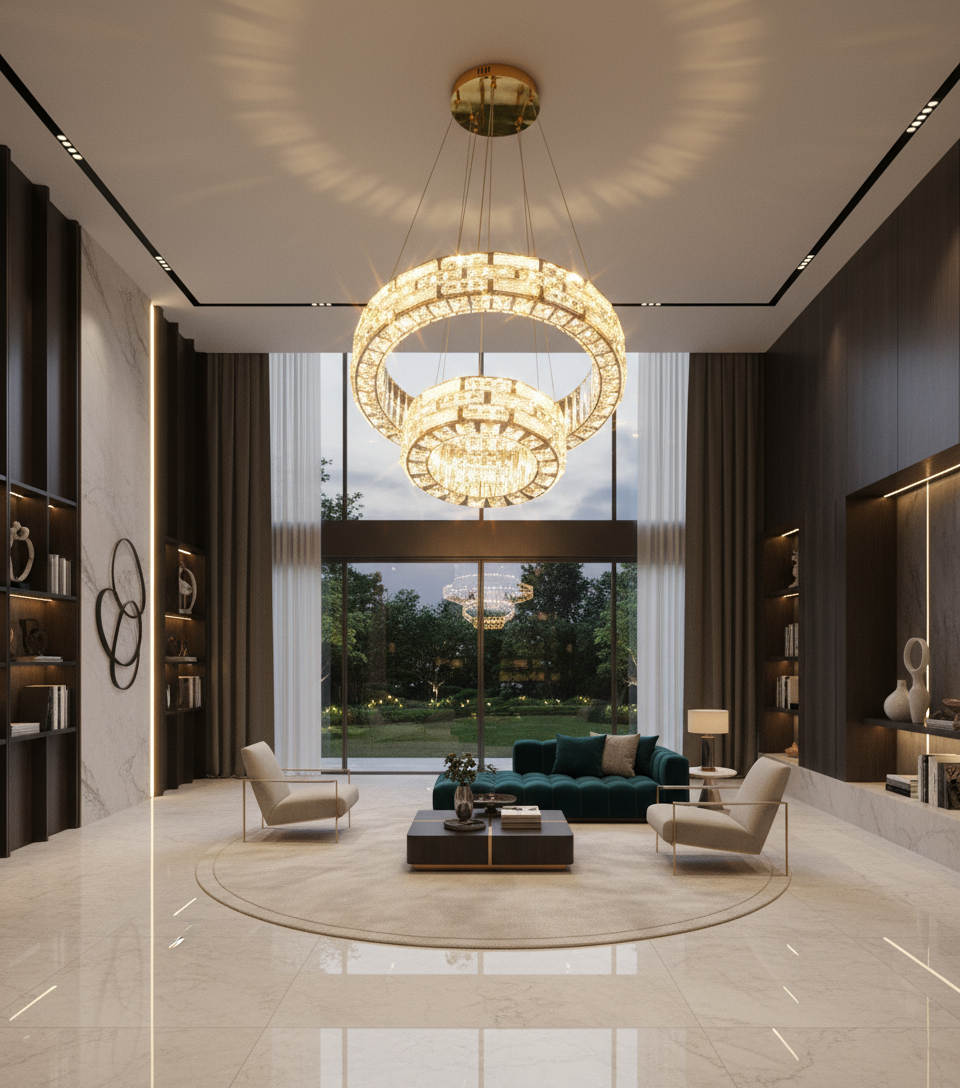 Elevate your space with the Solara Halo Chandelier, a breathtaking masterpiece designed to redefine luxury. Featuring dazzling concentric rings crafted from radiant gold and sparkling crystal, this chandelier exudes sophistication and modern elegance. Perfectly suited for grand living rooms, dining areas, or upscale commercial spaces, its bold yet refined design becomes the focal point of any interior.