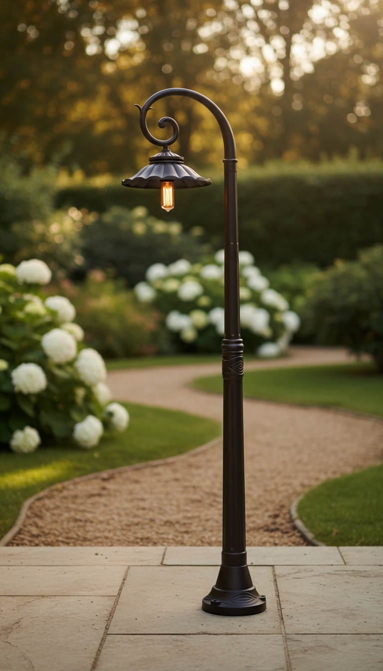 Vintage Garden Post Lantern – Curved Elegance for Pathways & Patios